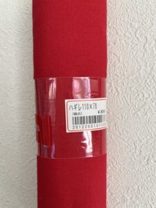 お店ではこう(↓)頼みます。だいたいの布が幅100cm以上あるはずですので・・・。ハギレコーナーから見つけてもいいです。ユザワヤにて、110 × 70 で約300円でした。